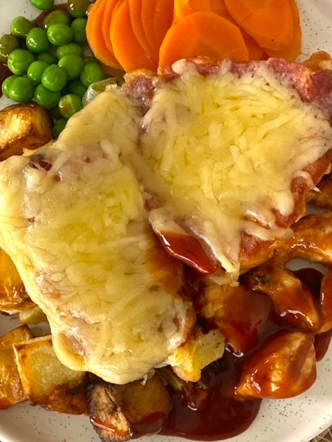 Hunter’s Chicken with Crispy Potatoes, Bacon & Melted Cheese