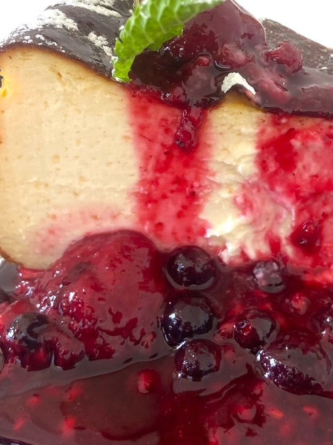 High-Protein Greek Yogurt Cheesecake with Red Mixed Fruit