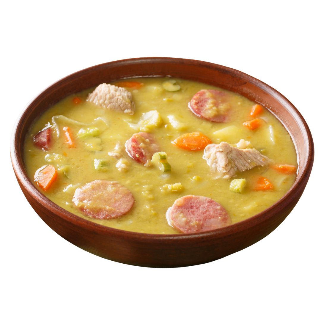 Ingrediënten: Spliterwten, rookworst, prei, wortelen, knolselderij, aardappelen, uien, spek of buikspek, selderijstengels en -blad, laurierblad, kruidnagel, zout, zwarte peper.
